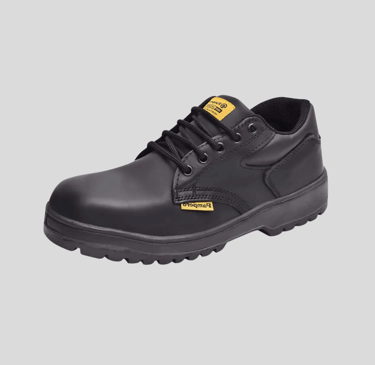 Zapato de trabajo hecho en cuero flor con terminación lisa, y suela de poliuretano mono-densidad. Cuenta con puntera de acero, es dieléctrico, tiene alta resistencia a la abrasión e hidrocarburos, y es antideslizante.