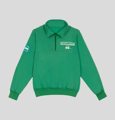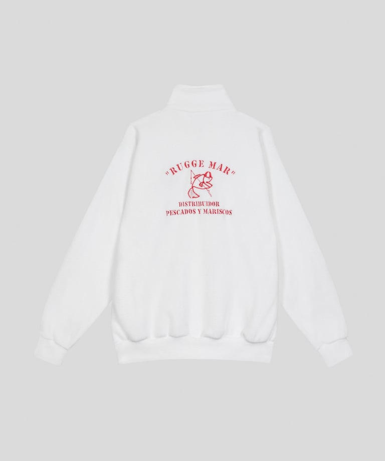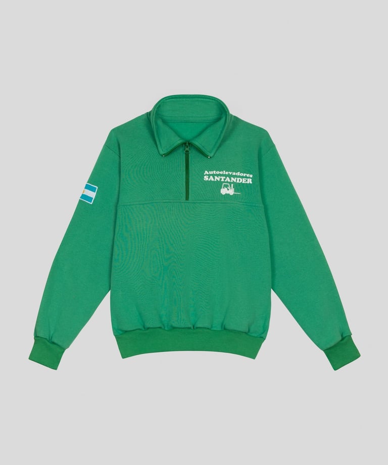 Buzo de frisa invisible de algodón peinado con medio cierre, logo estampado en el pecho y bandera Argentina bordada en la manga.
