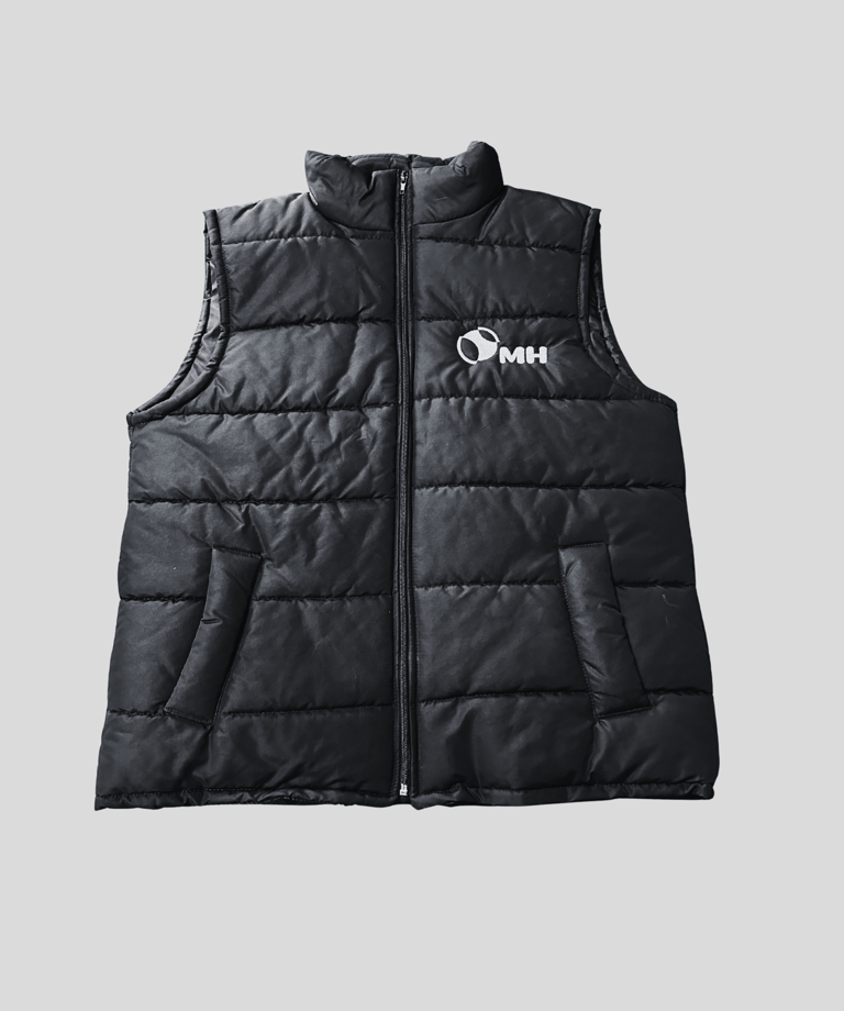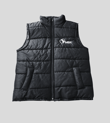 Chaleco inflado de microfibra resinada relleno con logo bordado en el pecho.
