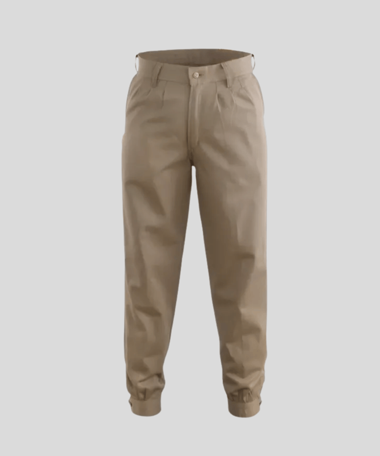 Confeccionada en gabardina con costuras reforzadas, bolsillos, y presillas ajustables en cintura y botamanga.
